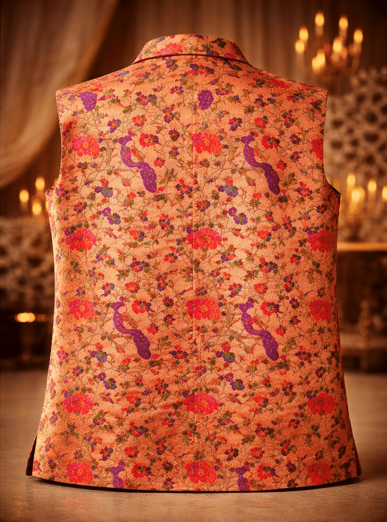 Peach Orange Paithani Silk Nehru Jacket for Men